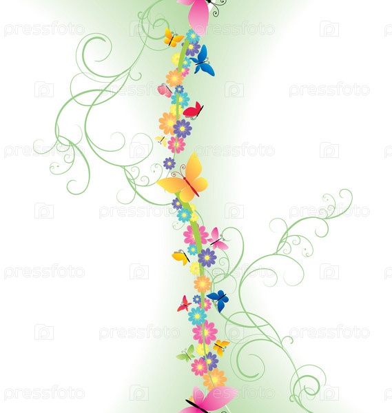 Кайма из красочных весенних цветов на белом фоне