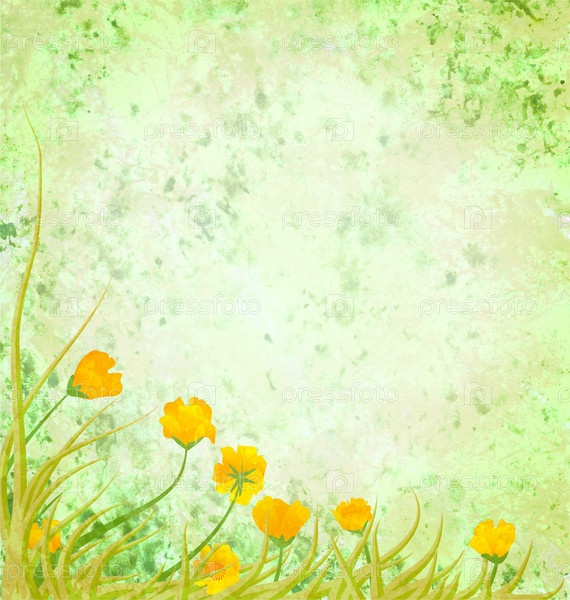 Весенний светло-зеленый фон с желтыми цветами