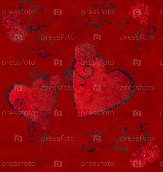 Гранжевый фон с красными сердцами