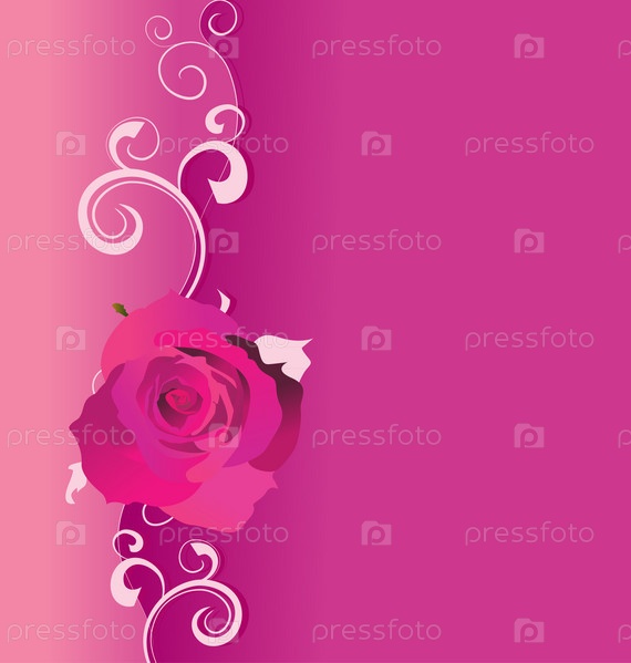 Розовый векторный фон с розами и завитками. Тема любви, свадьбы, романтики