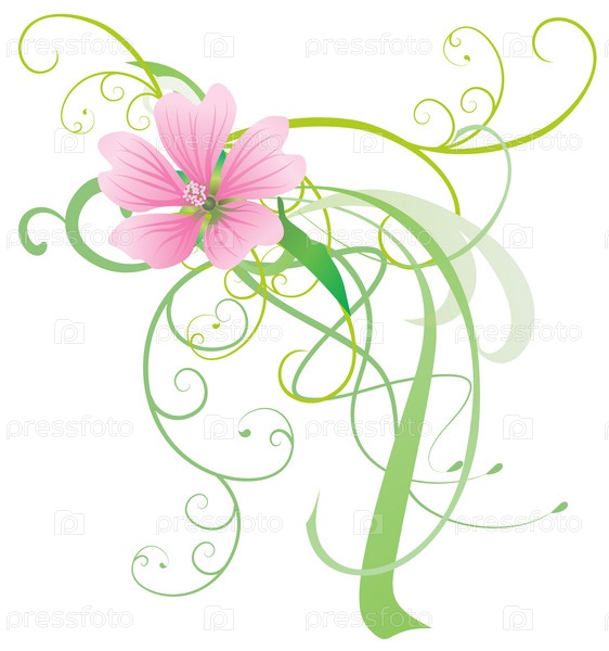 Векторный розовый цветок мальвы с абстрактным декором, изолированный на белом фоне