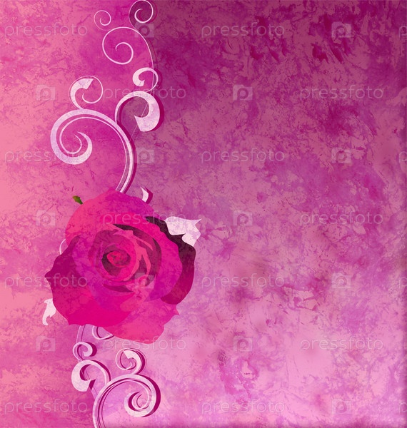 Розовый векторный фон с розами и завитками. Тема любви, свадьбы, романтики