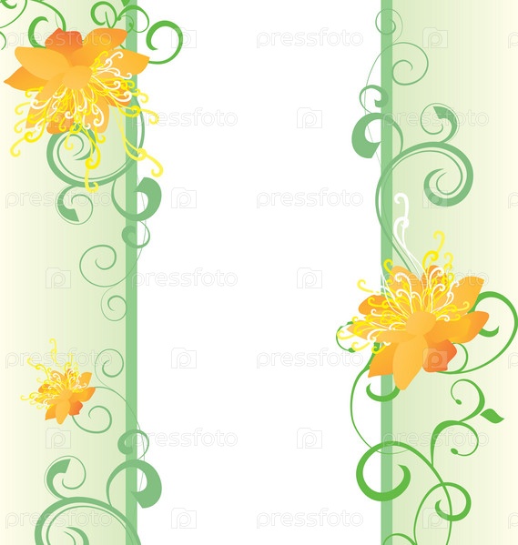 Зеленый растительный орнамент с оранжевыми цветами. Векторная рама