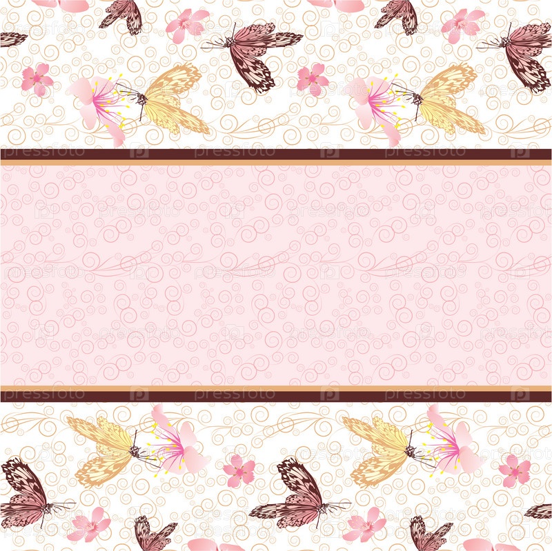 Розовые цветы и бабочки в качестве границы пустого векторного шаблона