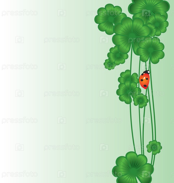 Зеленая векторная граница из клевера с божьей коровкой на День Святого Патрика
