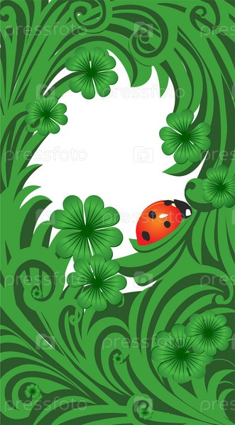Зеленая векторная рамка из клевера с божьей коровкой на День Святого Патрика