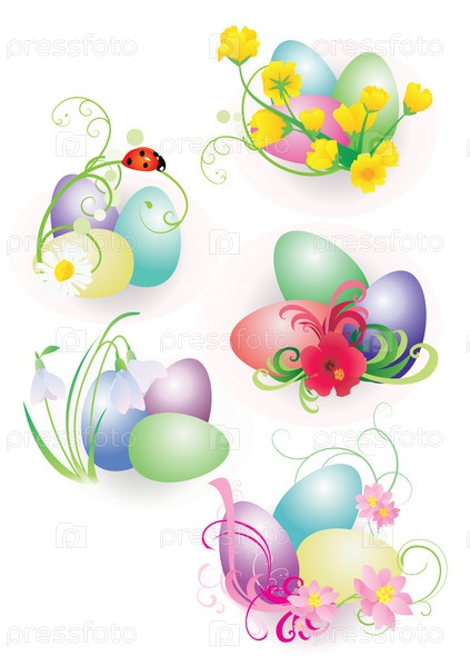 Набор абстракций с пасхальными яйцами на белом фоне