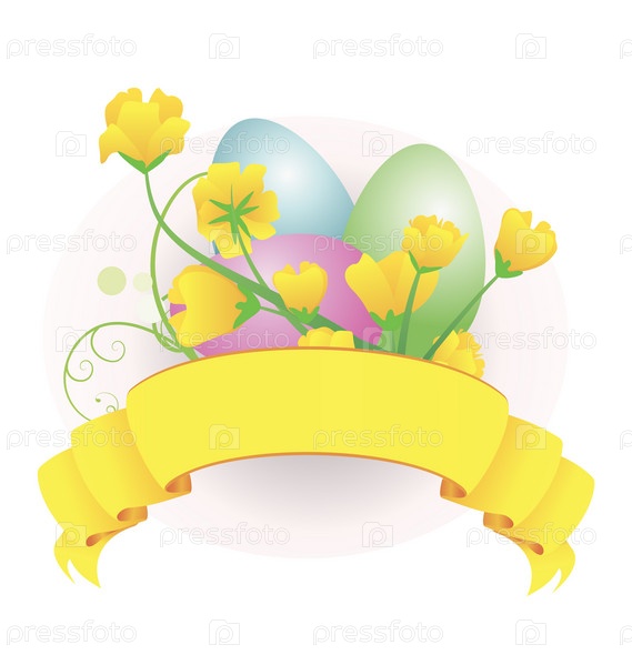 Лента с цветами и пасхальными яйцами на белом фоне