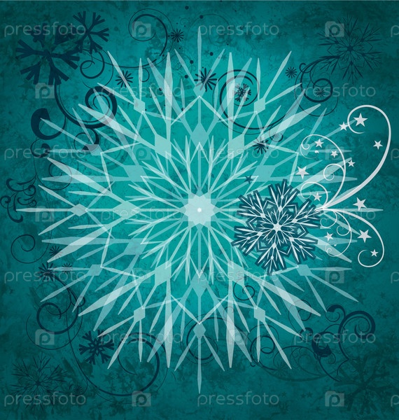 Гранжевый квадратный фон с зелено-голубыми снежинками