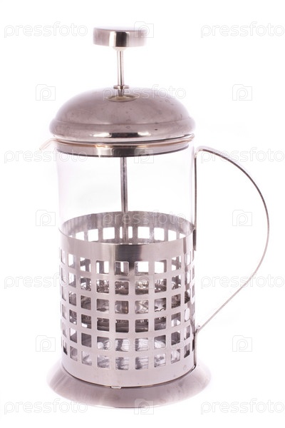Заварочный чайник с прессом, изолированный на белом фоне