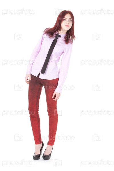 Девушка смотрит, как будто ищет кого-то, изолированная на белом фоне