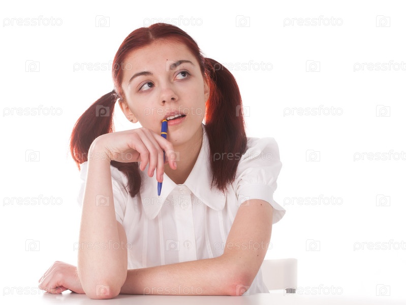 Мечтательная девушка, изолированная на белом фоне