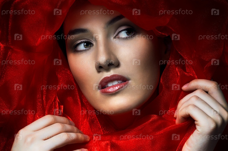 Красивая девушка в красной ткани