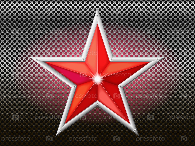Красная звезда на фоне металлической сетки