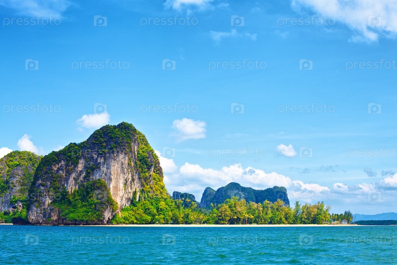 Высокие скалы с деревьями в Андаманском море, Таиланд