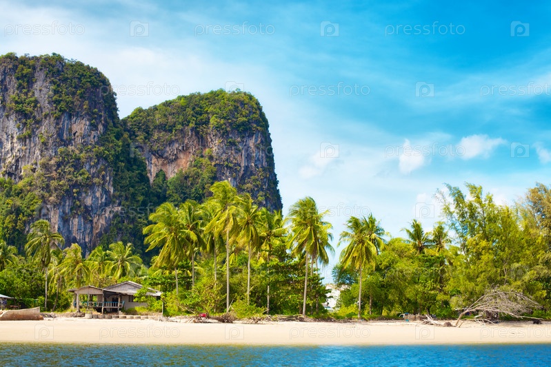 Побережье с высокими скалами в Андаманском море, Таиланд