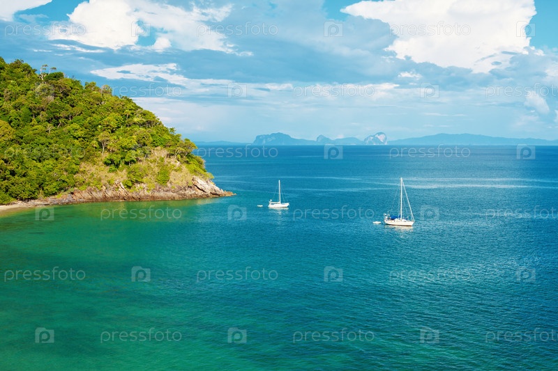 Яхты в Андаманском море, вид с воздуха, Таиланд