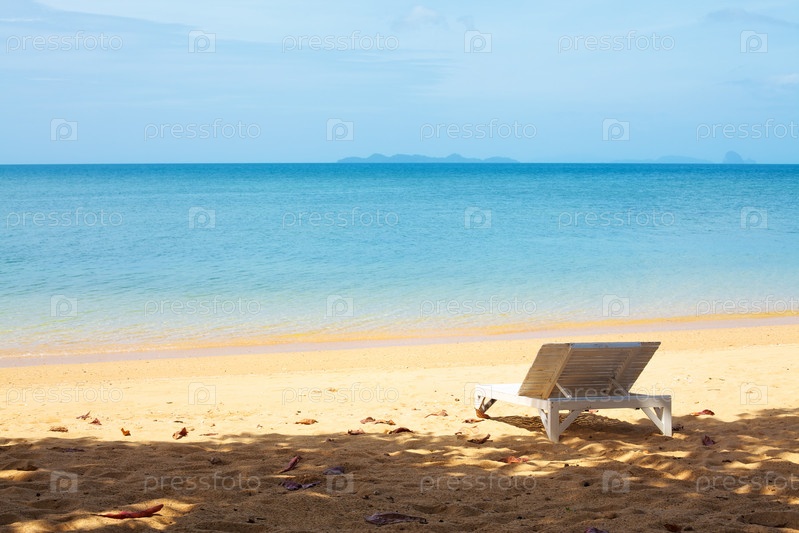 Лежак на тропическом песчаном пляже в солнечный день