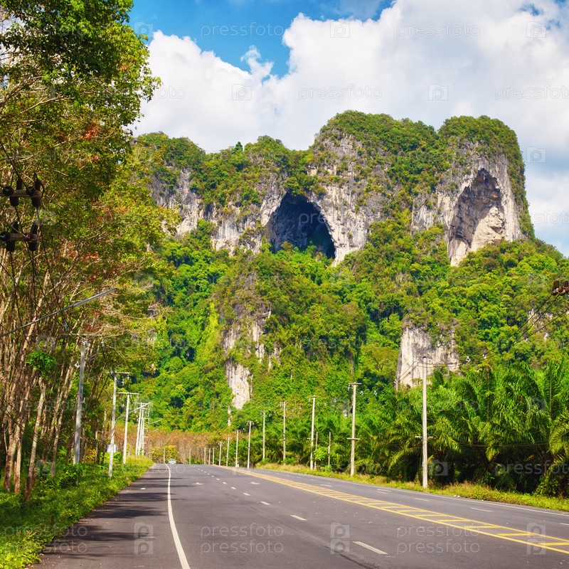 Асфальтированное шоссе в джунглях. Гора Вит, Краби, Таиланд