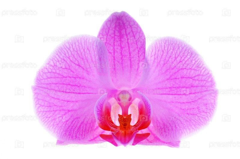 Розовая орхидея крупным планом на белом фоне