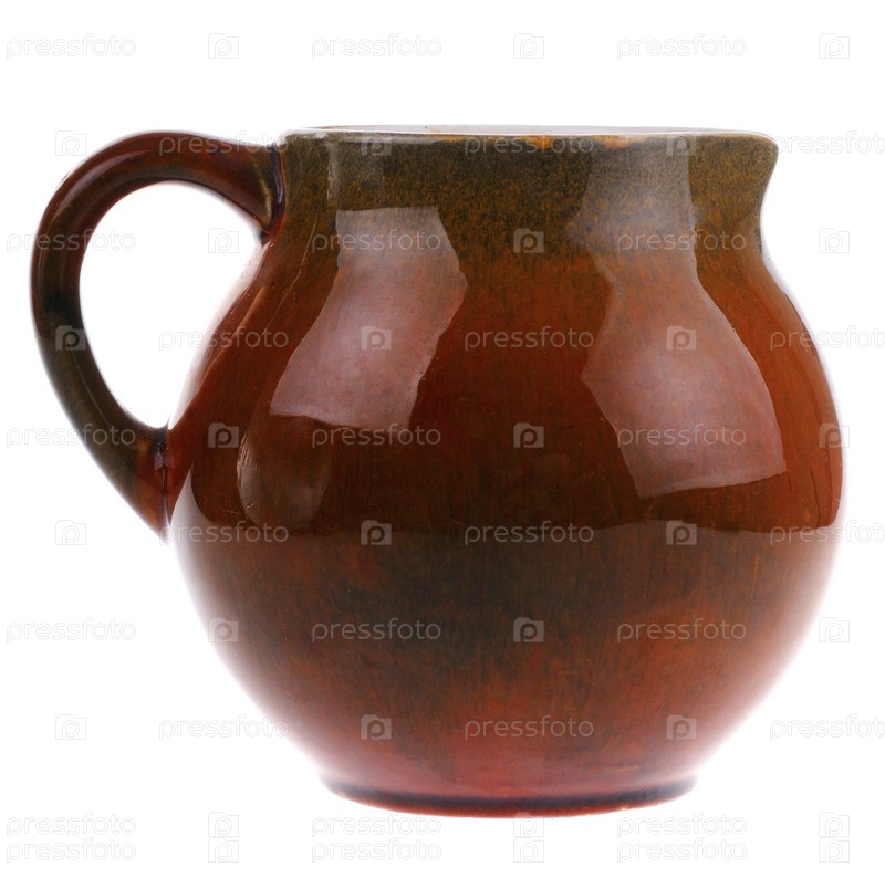Традиционный славянский глиняный кувшин, изолированный на белом фоне