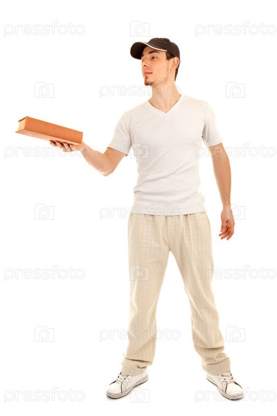 Парень в повседневной одежде с книгой на белом фоне