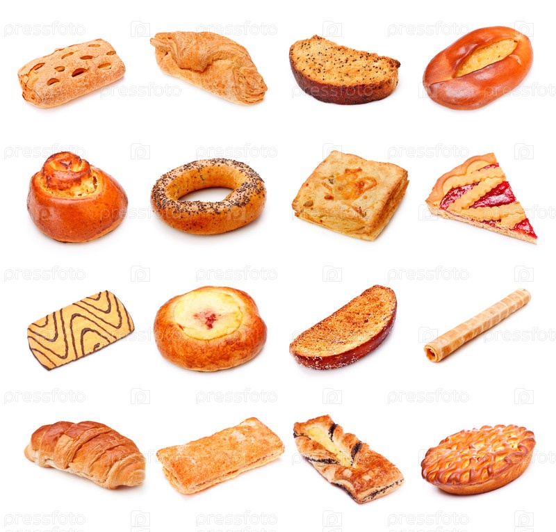 Различная сладкая выпечка, изолированная на белом фоне