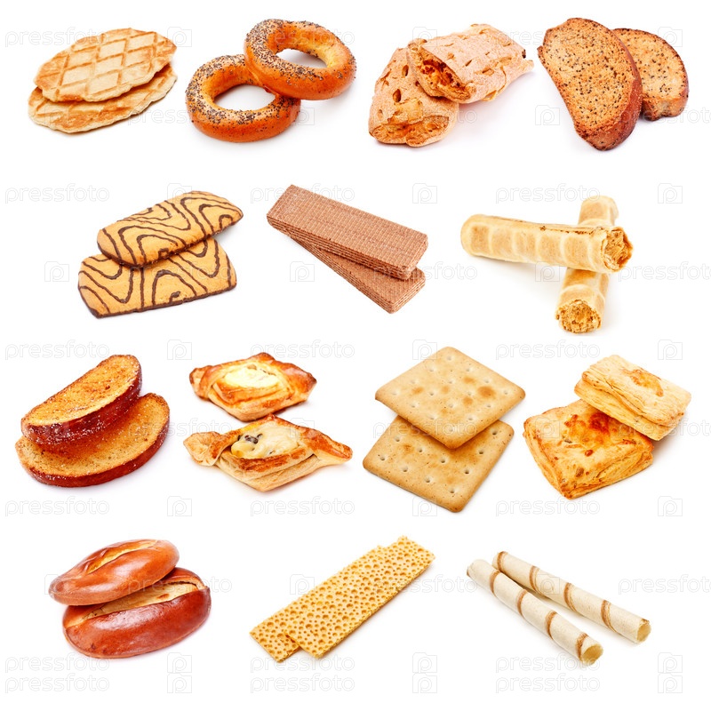 Различная сладкая выпечка, изолированная на белом фоне