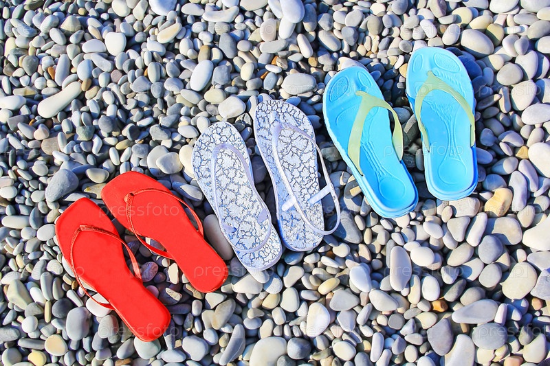 Разноцветные женские сланцы на пляже