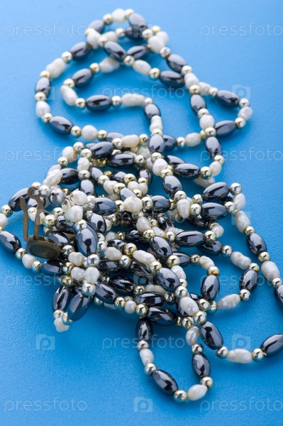 Объект на синем - костюм ювелирные украшения бусины вблизи
