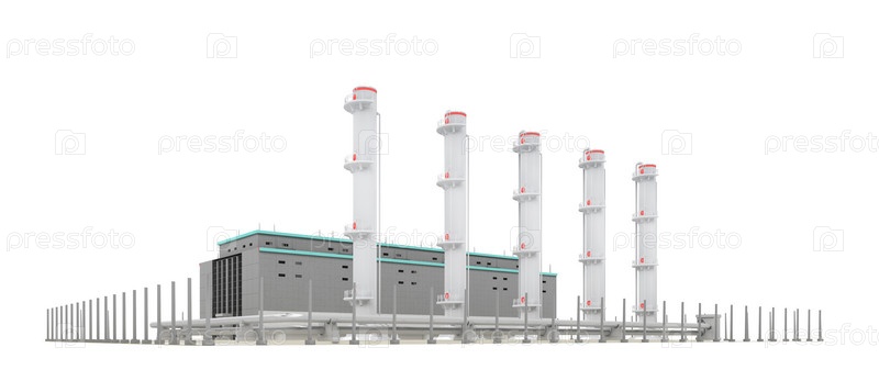 Здание с трубами на белом фоне