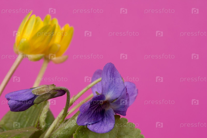 Весенние цветы на розовом фоне