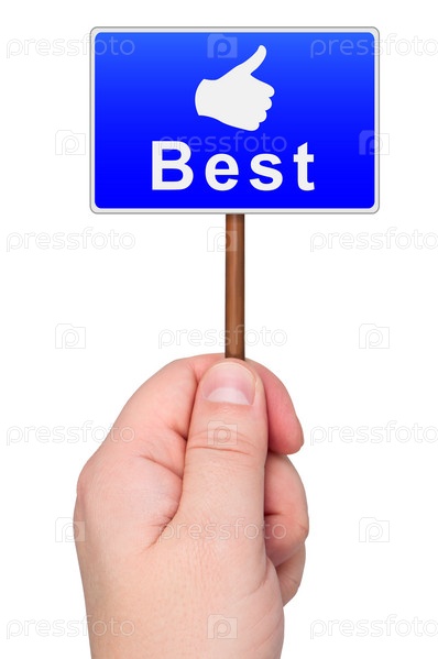 Дорожный знак с надписью ЛУЧШИЙ в руке