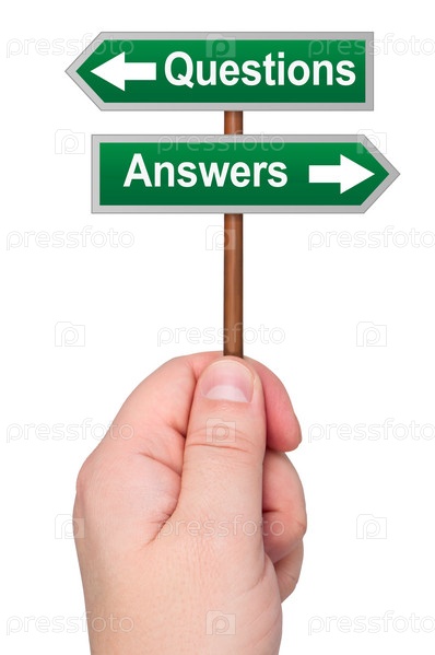 Дорожные указатели со словами ВОПРОСЫ и ОТВЕТЫ в руке
