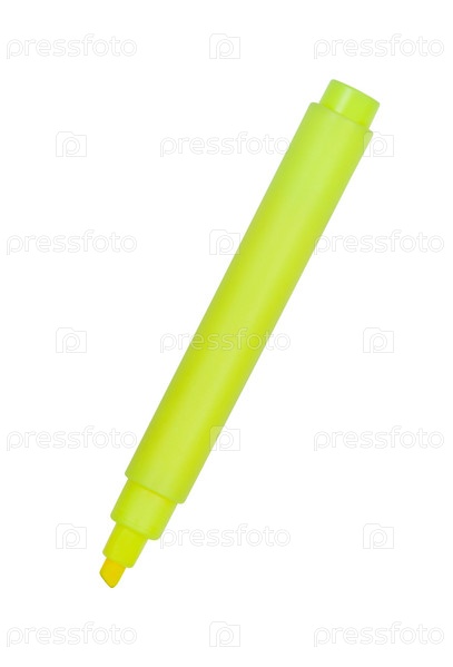Желтый маркер, изолированный на белом фоне с обтравочным контуром