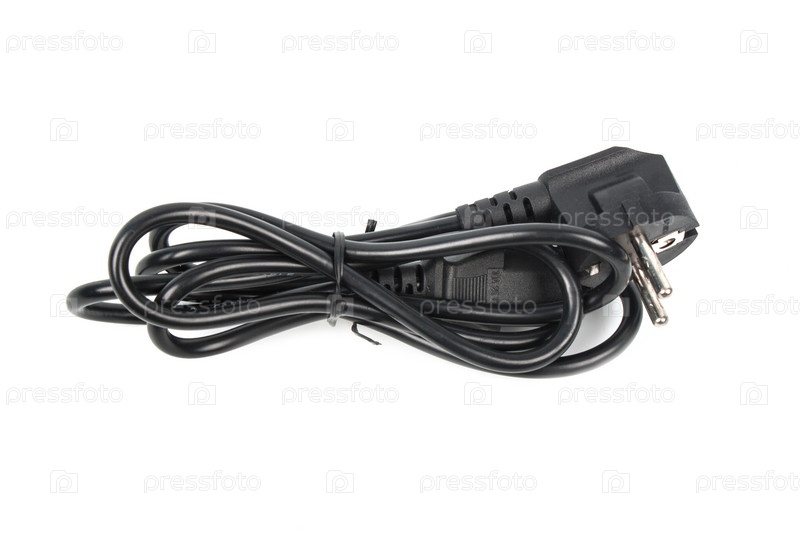 Черный электрические соединительный кабель, изолированный на белом фоне
