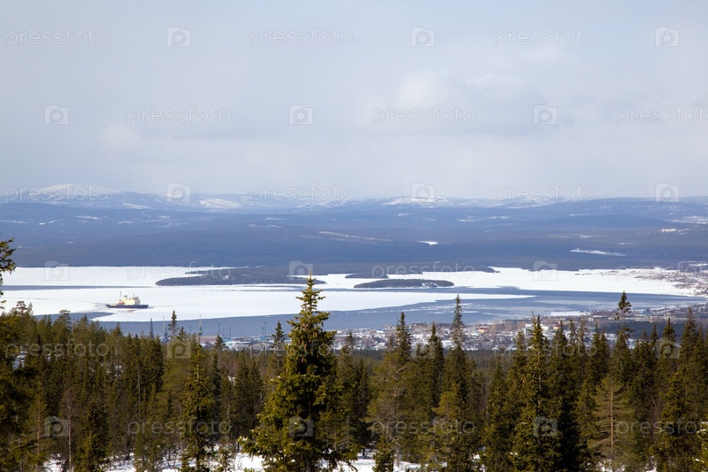 Панорама Кандалакши с горы. Белое море. Россия