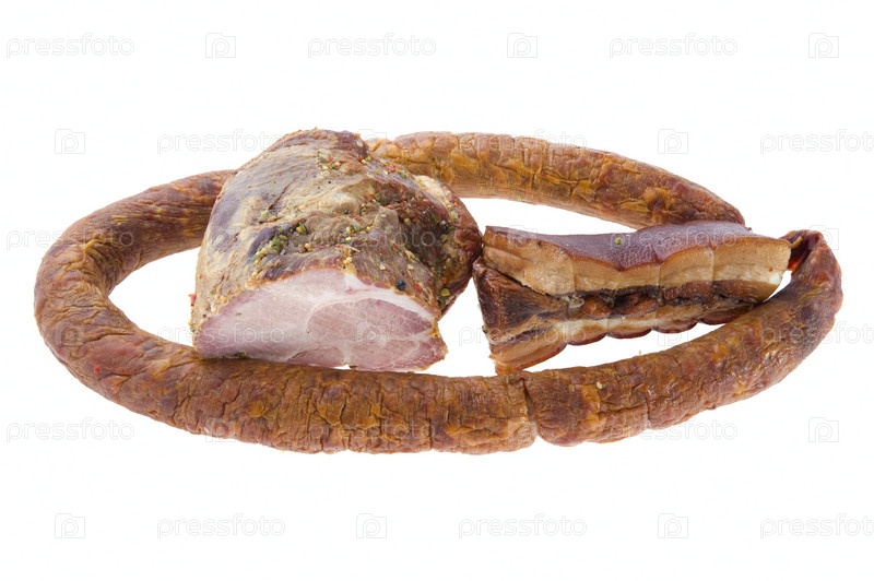 Object on Белое - еда Выкуренная колбаса и свинина гамон
