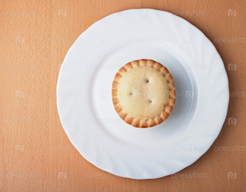 Выпечка на белой тарелке на столе, вид сверху