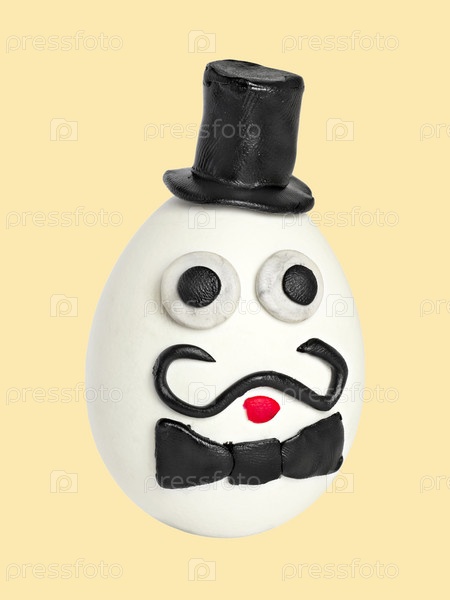 Поделка из яйца и пластилина, изолированная на желтом фоне
