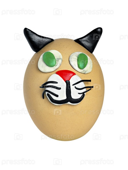 Поделка из яйца и пластилина, изолированная на белом фоне