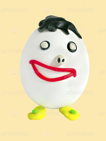 Поделка из яйца и пластилина, изолированная на желтом фоне