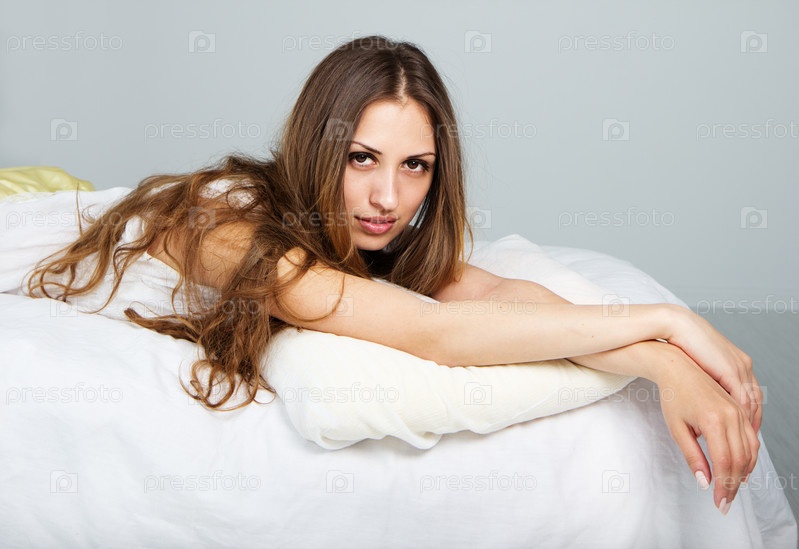 Студийный портрет красивой девушки на кровати