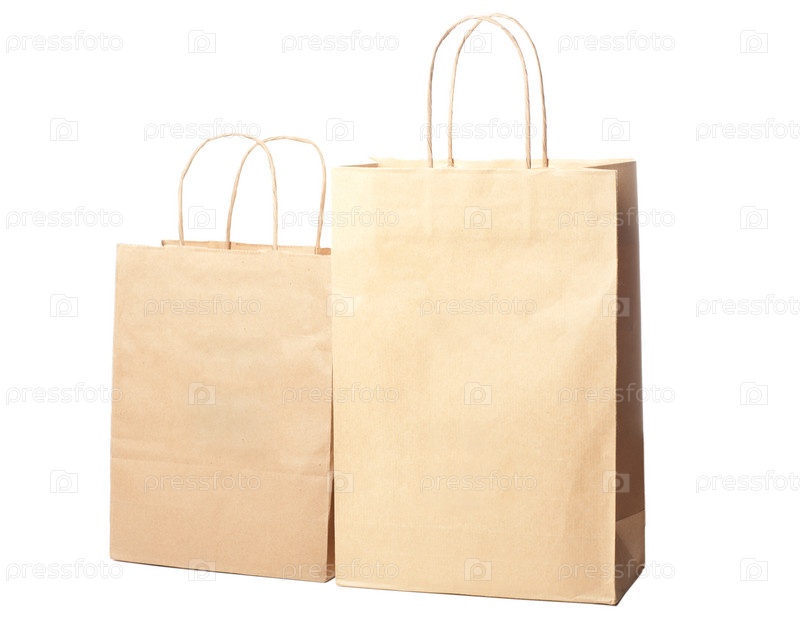 Два бумажных пакета, изолированных на белом фоне