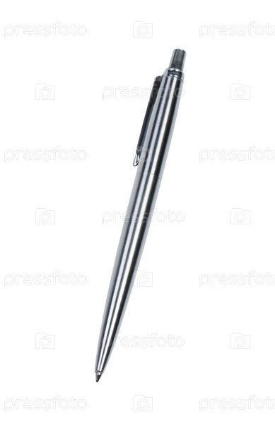 Металлическая шариковая ручка, изолированная на белом фоне