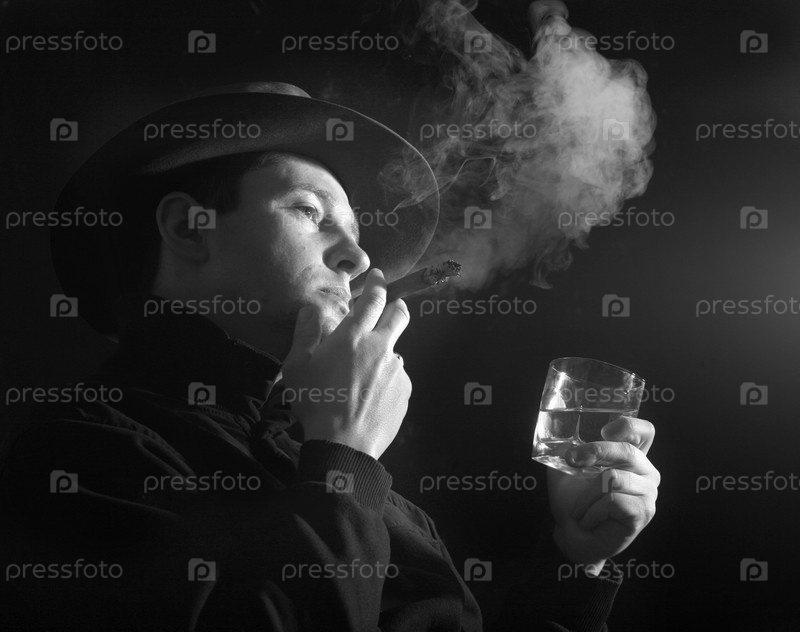 Черно-белый портрет мужчины с сигарой