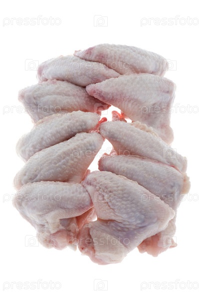 Объект на белой - сырой куриной ножке