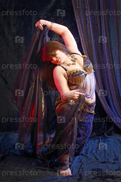 Красивая девушка брюнетка в восточном костюме с накидкой из прозрачной ткани