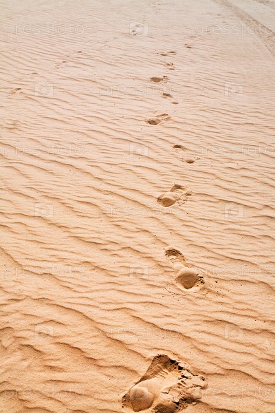 Следы ног на песчаной дюне в пустыне Вади-Рам, Иордания