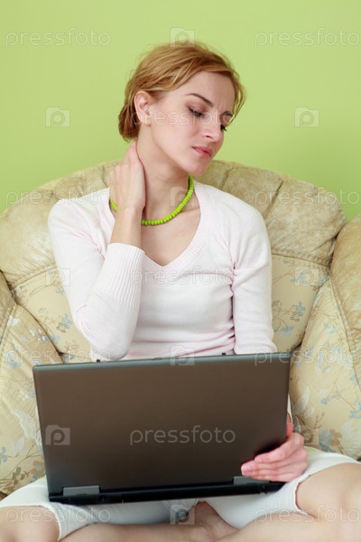 Уставшая женщина с ноутбуком